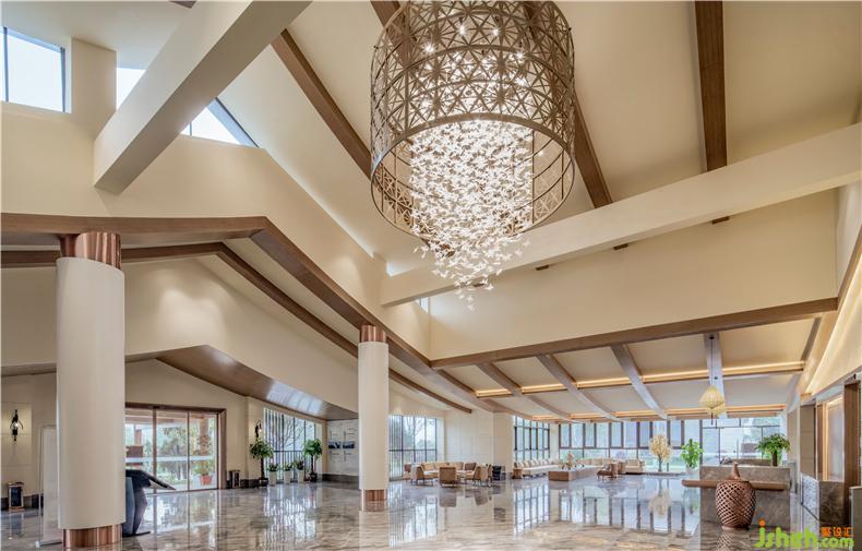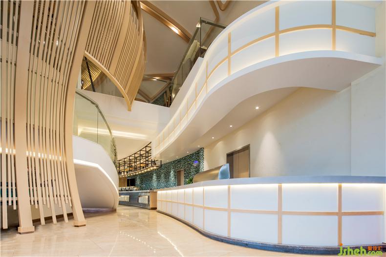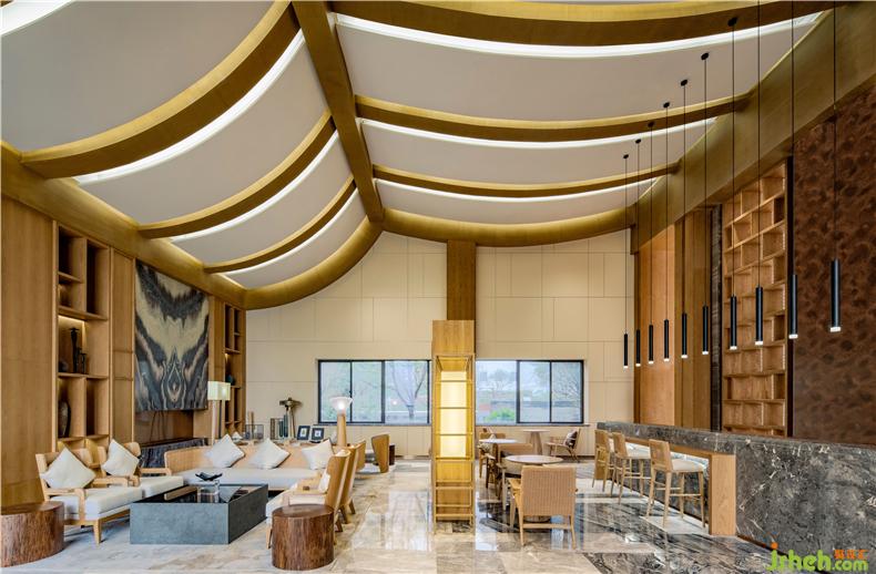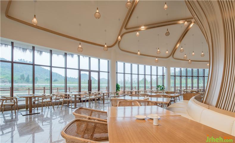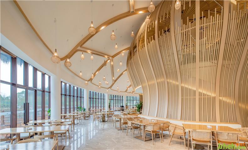 稻田餐厅的空间感、线条感及陈设艺术感都能透过“意”去参透东方那种含蓄而深远的美学修养。装修设计陈设色调与湿润的木色主调和谐统一,编藤织物以起伏的形态穿插于空间的流动之中,演泽空间的色香味俱全。酒店设计
