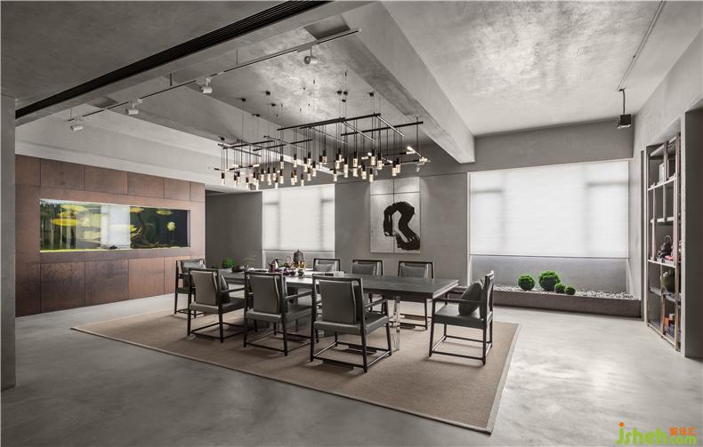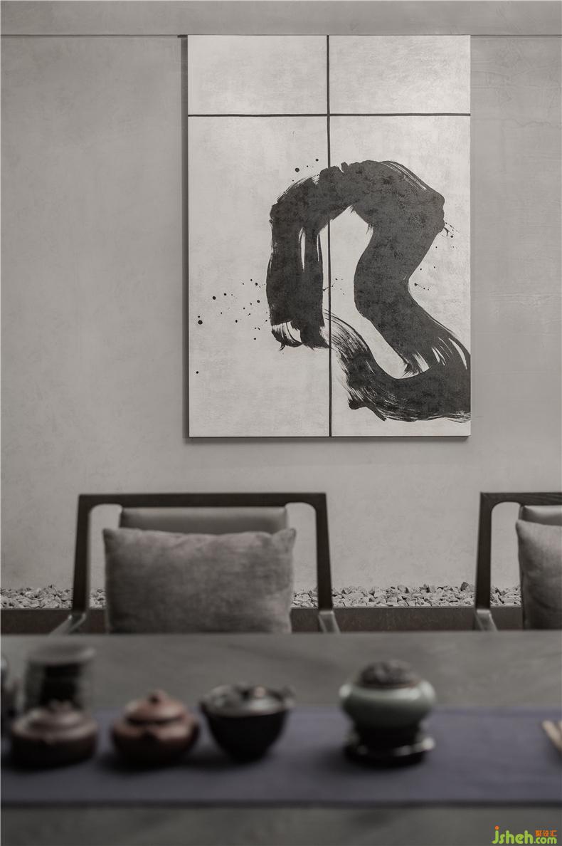 以沉稳大气的灰色基调,简约质朴的清水混凝土墙面和别具质感绒沙发。营造一个静谧高雅、舒适和谐的私人空间,演绎低调奢华的生活体验。灰色绒质沙发被运用在家居之中,柔和的感觉和温馨的格调;运用直线条穿插于空间中,柔美雅致而赋予节奏感,让设计变得立体丰富。