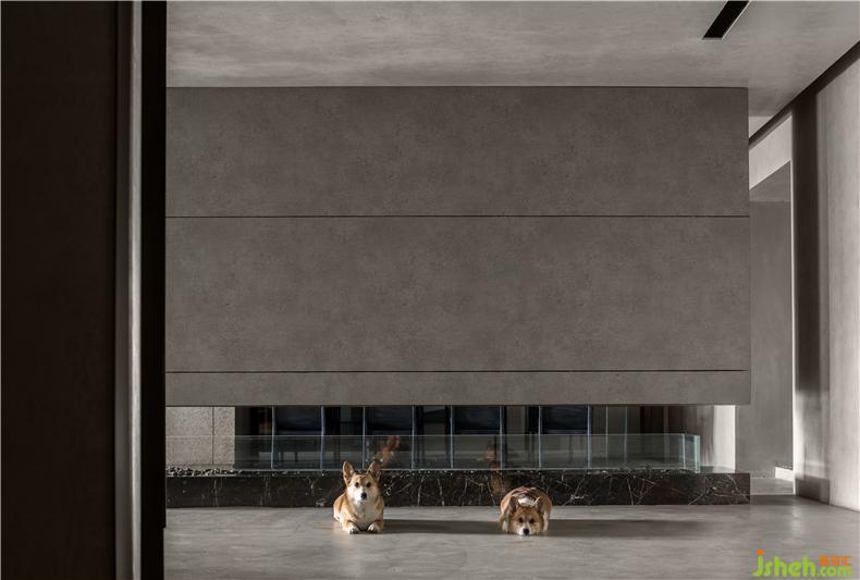 设计特别强调空间的比例尺度以及色彩的对比调和,更要注意动线设计保持流畅,方便行走移动。灰褐色给予空间内敛的质感,过道中简约的地灯与灯带,让其氛围又华丽而不失实用性。
