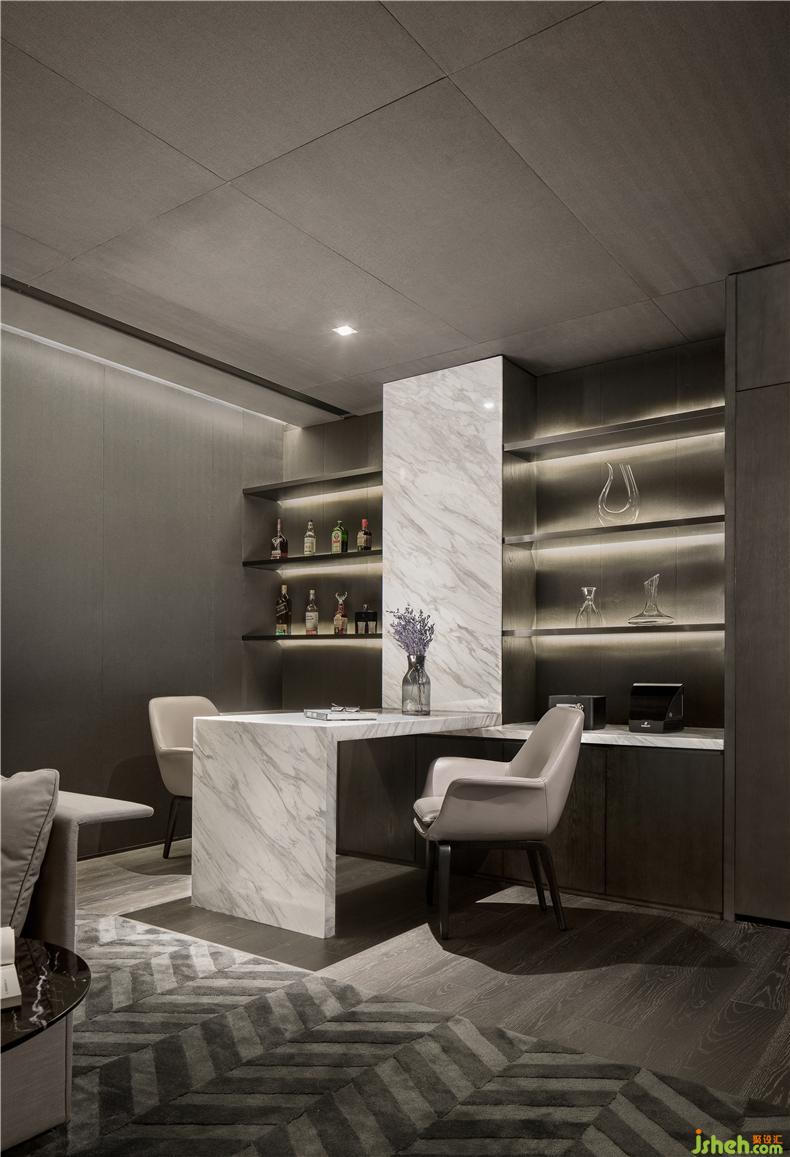 白色大理石的简约吧台,给户主提供了放松畅饮的惬意时刻。