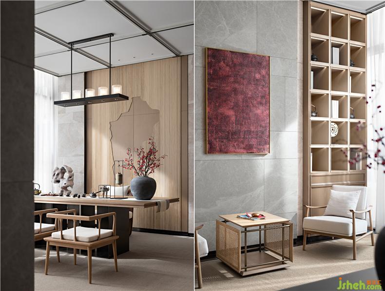 在项目销售前期,这里为来访者提供一个高品质的服务空间。样板房设计一切连接艺术、自然的物件在这里产生作用,品鉴、品茶、交流唤醒触动人心的感官之旅。