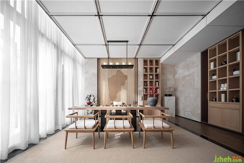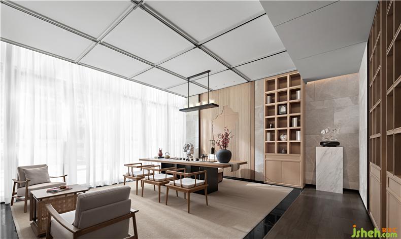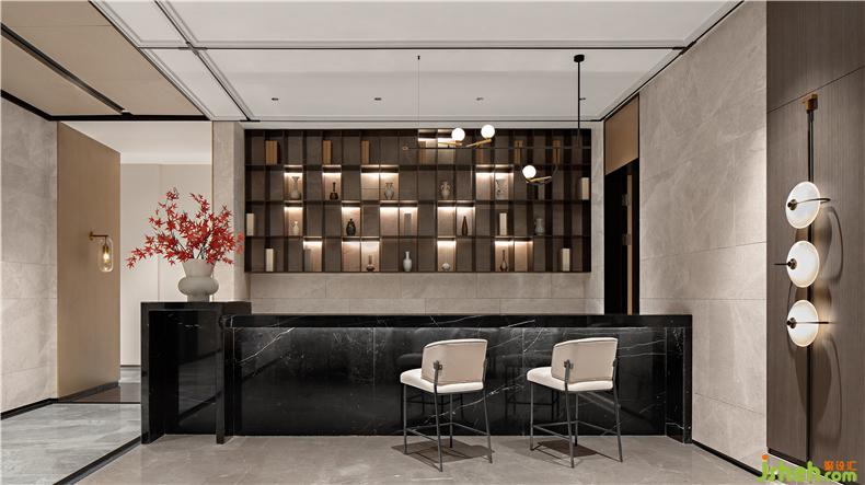 阅读、品茗本身就山居的生活方式,与温婉细腻的禅茶文化糅合,样板房设计水吧区的设计发掘出一种与时俱进的人文价值,传达人们对山居慢时光的追寻、观照。