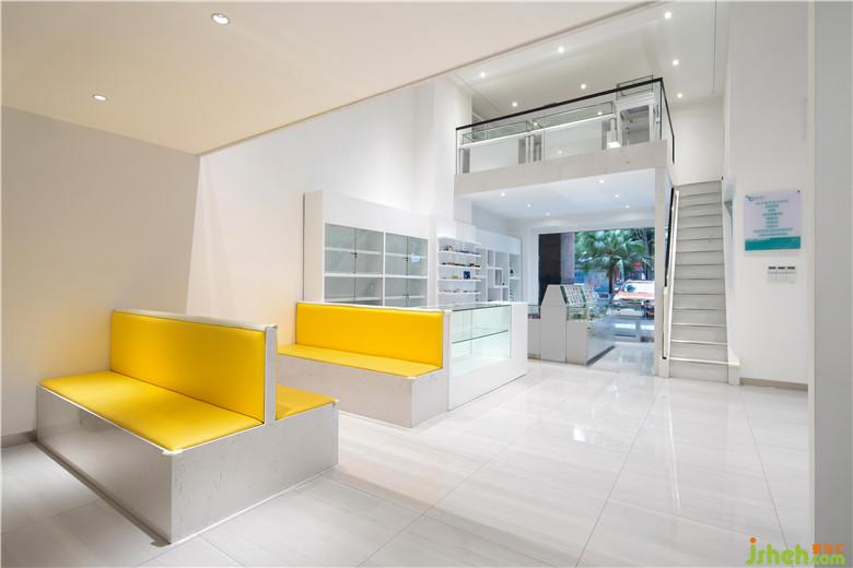 本案原户型结构并不理想,室内设计师在尽可能利用空间情况下平面功能分别有诊室3间、治疗室3间、手术室1间、眼镜展卖区、处置室、更衣室等……医疗机构是一个让人内心忐忑和排斥的地方,想到有距离的挂号台,令人焦虑的等候椅,流水式的就诊诊室门,漫长的等待和未知的恐慌以及医患之间的不信任感。
