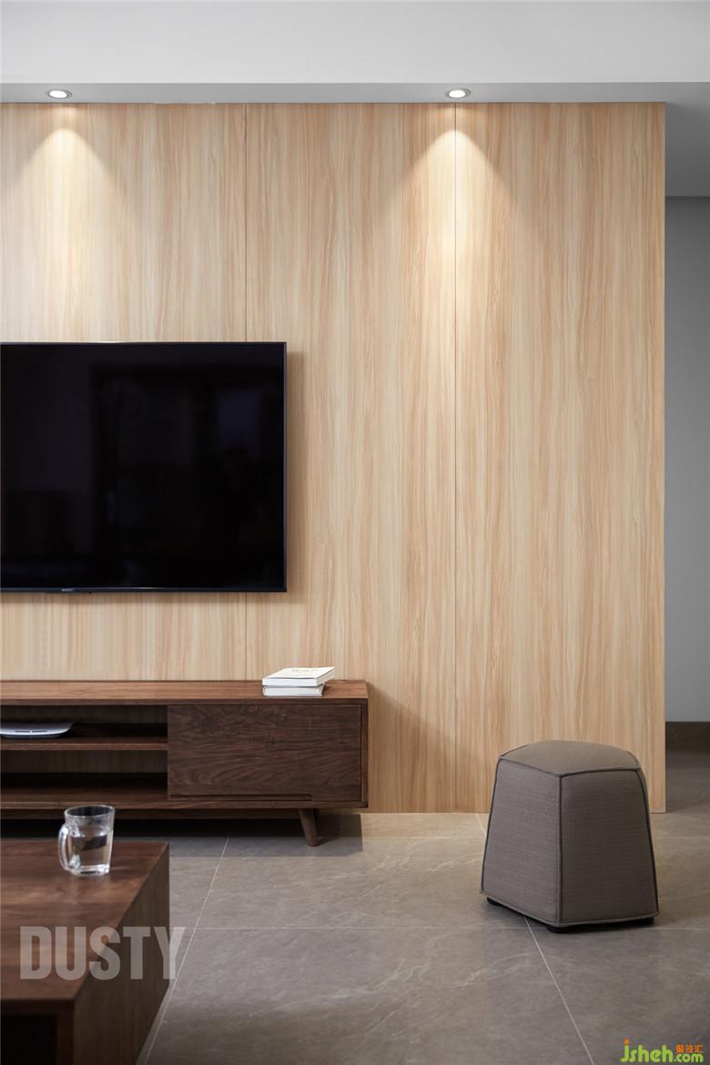 客厅木制品采用原木色为基础色调,干净明快的感觉扑面而来,闻到了宁静的气息。整面电视背景室内设计师运用原木墙挂造型,与客厅整个空间完美的融合还增添了一丝细腻感。