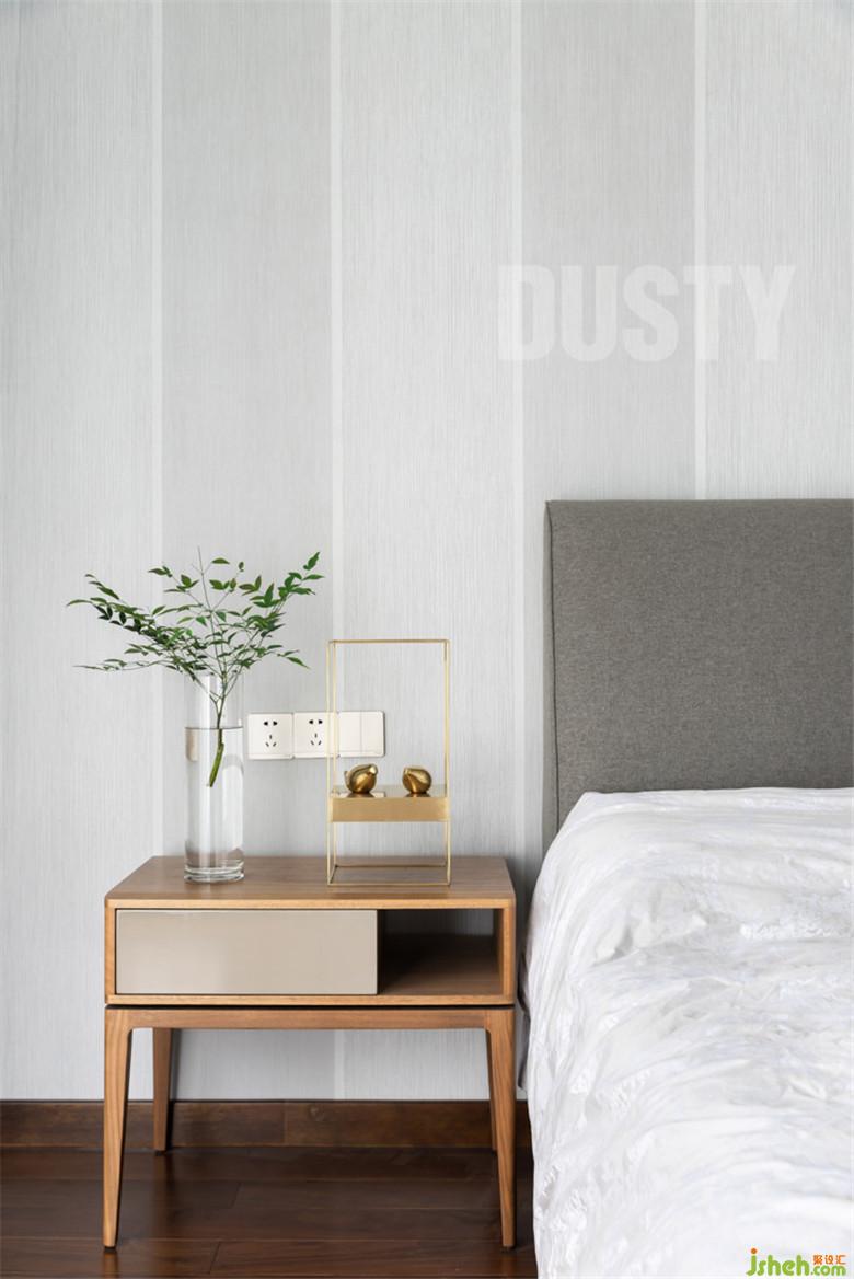 灰白色的空间,简约线条感的家具,床头柜上的精致装饰,室内设计师让整个空间偏向理性却又充满了故事性,简洁又舒适。