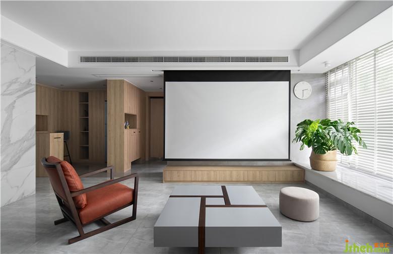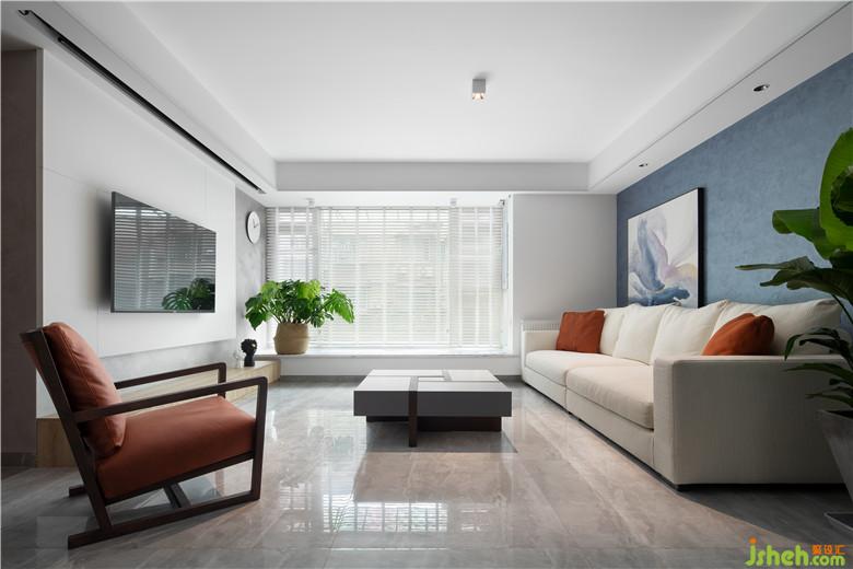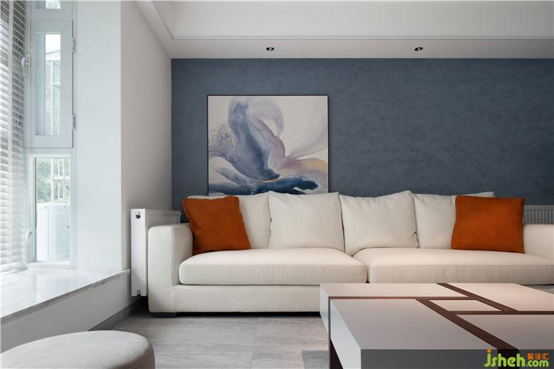 电视背景墙是大块面的灰白色搭配,鲜明的色彩对比,给视觉上以冲击感,但却又很舒适。