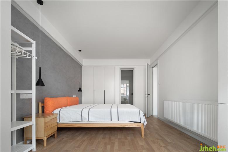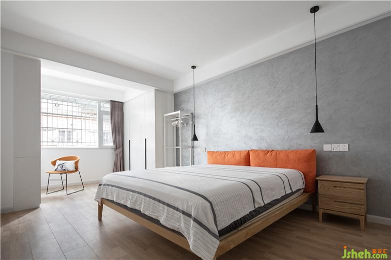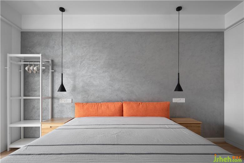 主卧室内设计师运用了浅色的艺术涂料,让卧室整体感觉温馨安静,床头两边采用了吊线灯,在光线柔和的同时释放了床头柜的空间,更为宽敞舒适。
