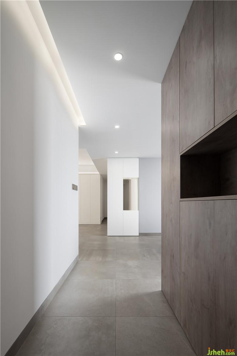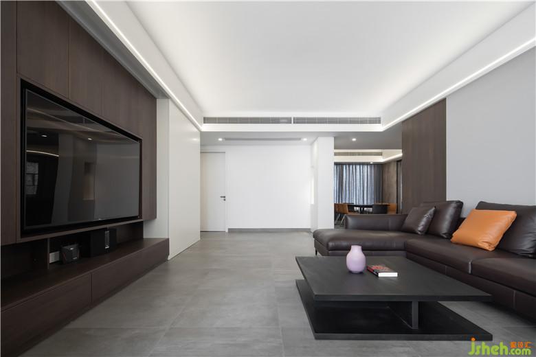 灰地,白墙,胡桃木色元素,为空间的主体,3500k的色温使家更加明亮。