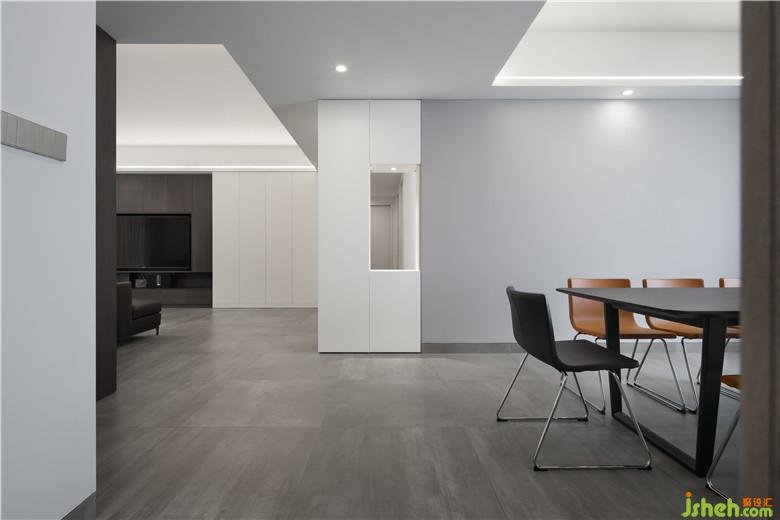 隔断柜室内设计师从底到顶的设计,既通透又考虑储物收纳与餐厅墙体巧妙的结合,既延伸了餐厅空间又形成了玄关的隔断。