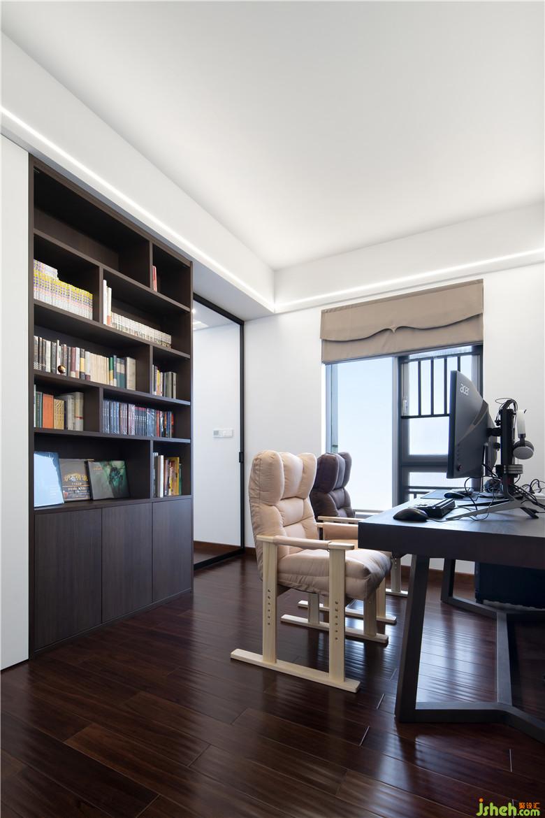 主卧里有一扇奇妙的玻璃门,打开进入书房的世界,关上又是独立的两个空间,互不影响。