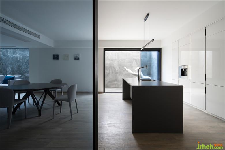每一个设计需在满足功能性的需求上的同时呈现美,又能符合居住者的真实需求。在此设计理念里,我们将原始结构里在一层的餐厨,移置到负一层,使负一层的使用率达到最大化,厨房的空间也变得更为宽敞。