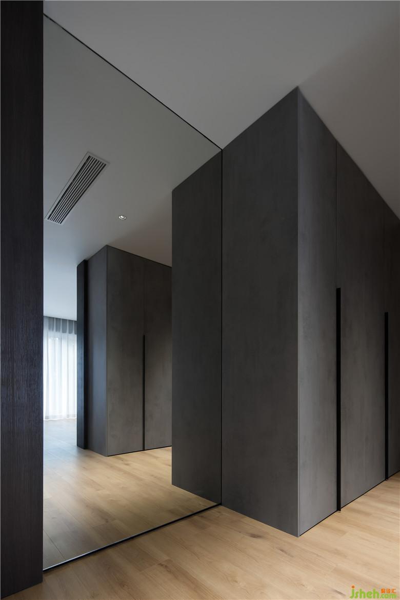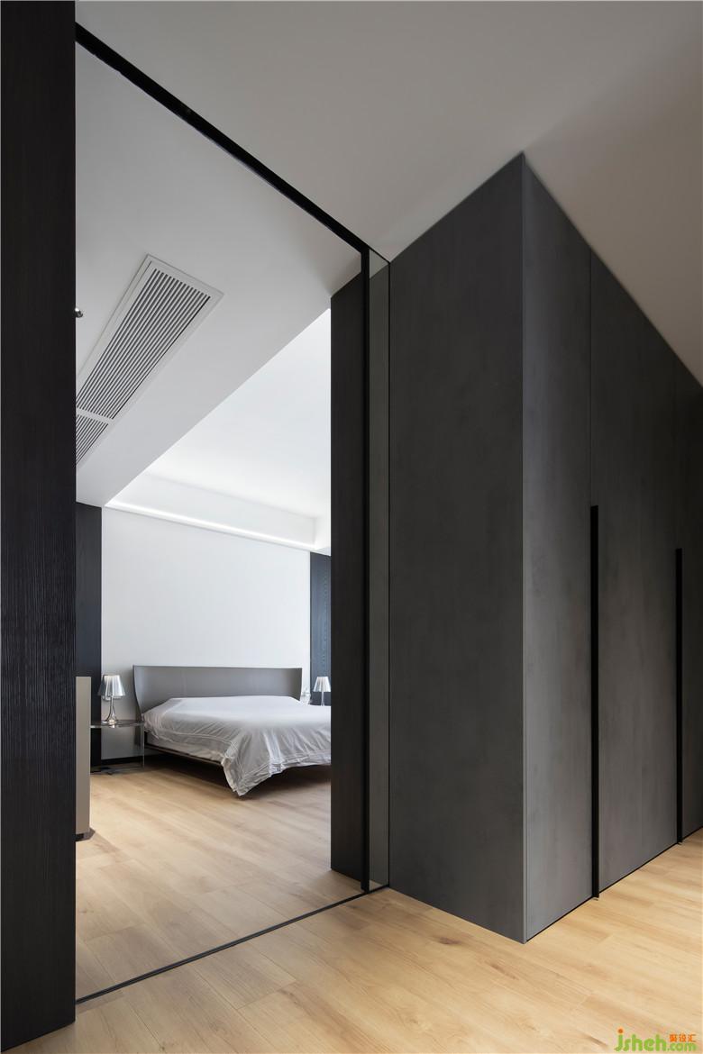 在设计主卧时,考虑到居住者对空间私密性和通风的需求,设计了一道有趣的门,关上时,从外面看是一面镜子,这时整个空间是密闭的,打开时,让主卧与外面的起居室有了联系。