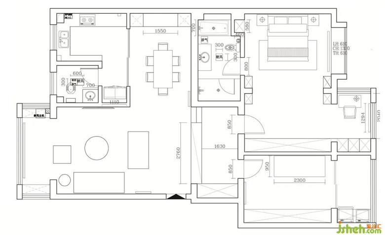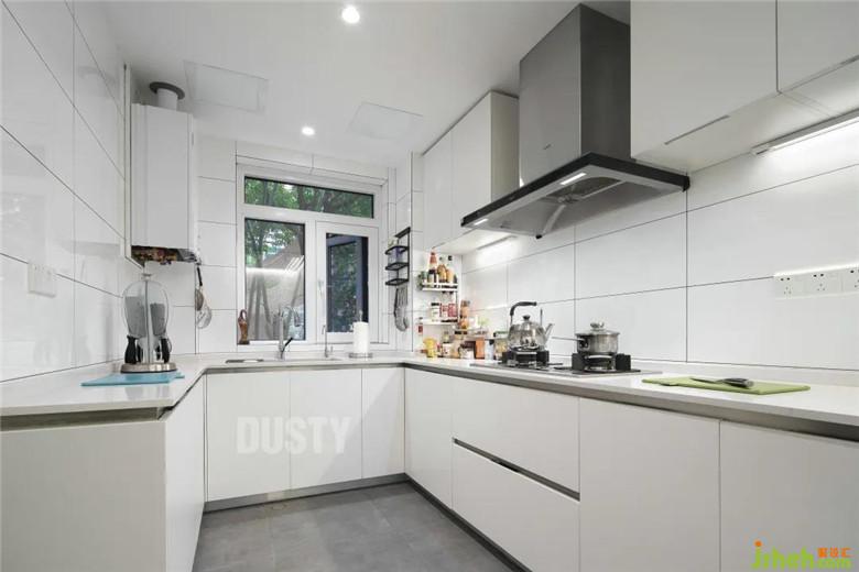 厨房与次卫洗手间干区打通,装修公司改为两扇大玻璃推拉门,增加了餐厅采光,同时密闭厨房油烟。另外,在餐厅增加西厨高柜,补充中厨收纳空间。
