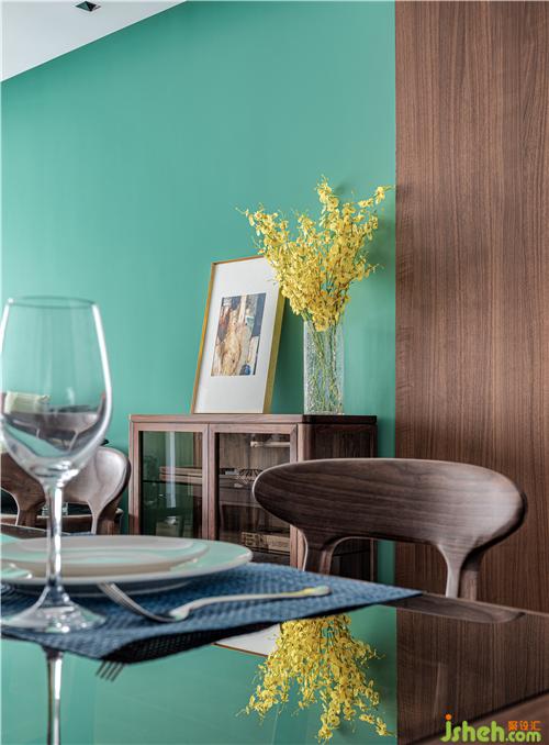 茶室以单一的松木原色打造,以纯静、简约的手法来表达禅意空间。墙上挂有女主人收藏的已故著名画家罗宝珊先生创作于民国二十四年的《梅花图》,珍贵的艺术品瞬间提升了茶室的格调。色彩的运用也颇为大胆,恰到好处的撞色,使空间有了绘画的美感。运用色彩来诠释家居的时尚感,力求呈现明快、简约的氛围。