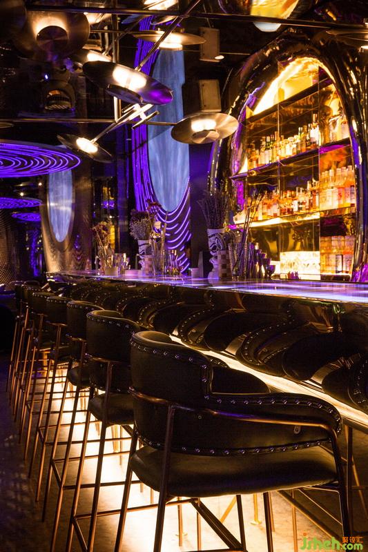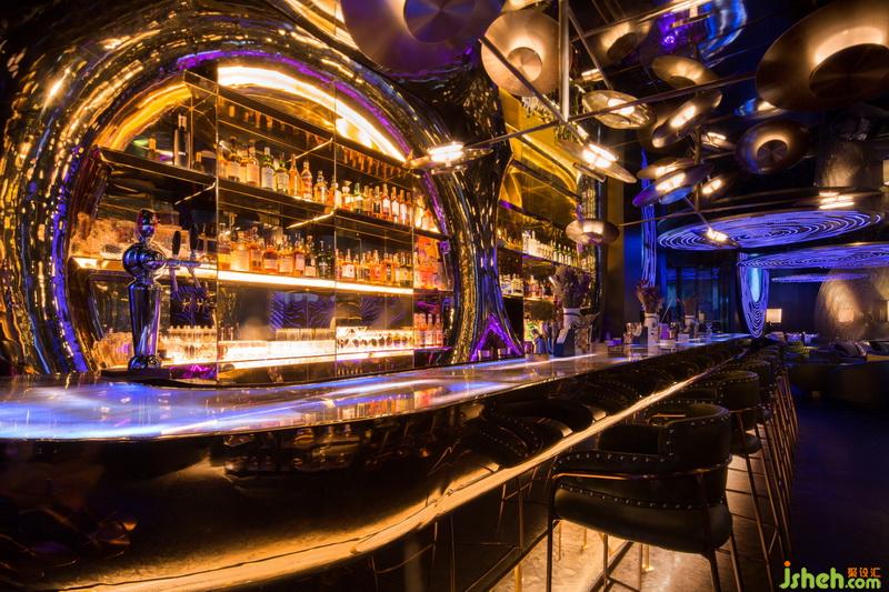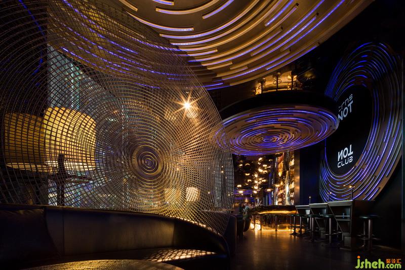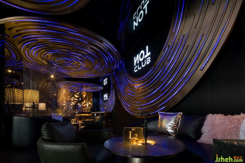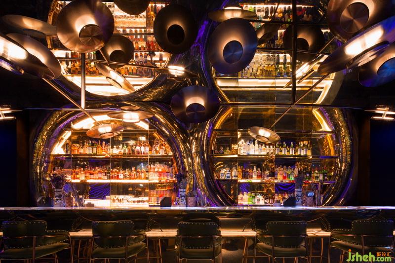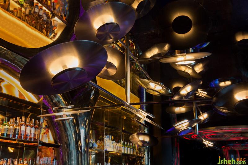 飞碟穿插置于空间,被设计师以巧妙的虚实手法把空间相隔错开,营造相对模糊暧昧的空间,为整个空间制造一种深邃的神秘感。