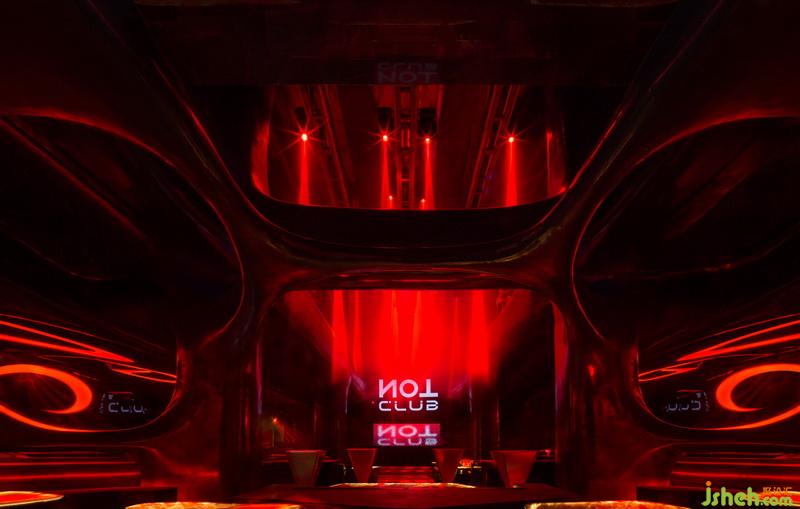 NOT CLUB主厅内的Party区,设计师提取未来感、撕裂作为元素,用连贯的设计手法对原来建筑进行重新“解构”;保留并利用了建筑体块关系和现有楼层结构,经过对原有楼板的选择性拆除,打造出一个全新的具有视觉张力的充满未来感的星舰空间,使人在空间内感受不再压抑。