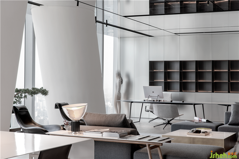 The City Living Room, in addition to meeting the daily office needs, is also a private area for guests and receptions. Art installations do not appear sudden in a very clean and rigid space, but strengthen the dynamics in the spatial vision, and the occasional taste gives the space more imagination possibilities. The ultimate unique texture and comfort experience brought by internationally renowned home brands such as B-B, MDF, FLEXFORM, MAXALTO, etc., enhances the temperament and air of the entire space, and is rich in high-level feeling.