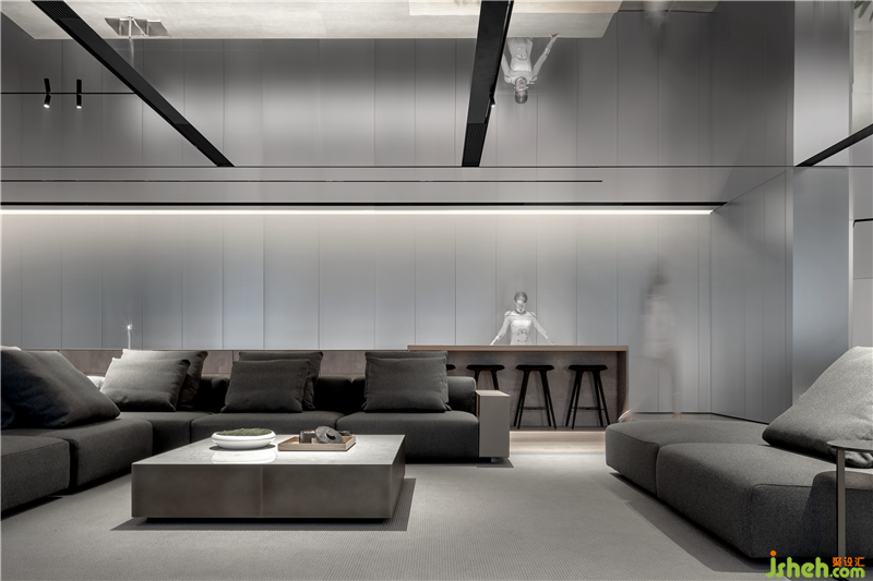At the top of the space, the mirror material reflection, so that the space has been extended, overlapping echo, creating a multidimensional visual effect. At the same time break the stereotype of the office, with a spacious and open hospitality area, level, texture, beauty, functionality, rich and thick.