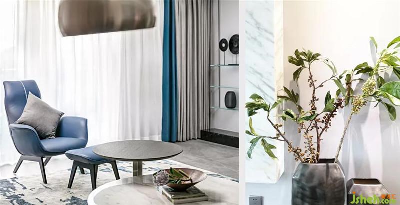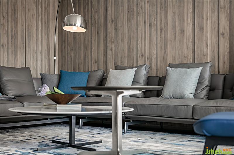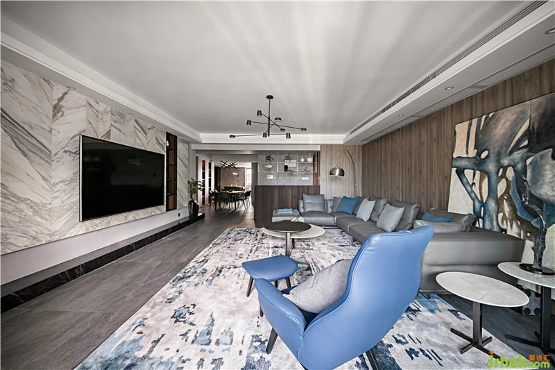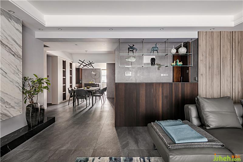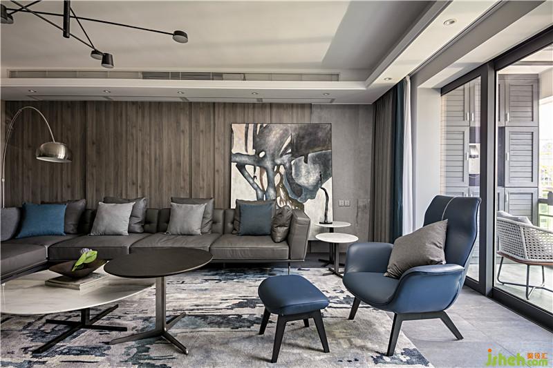 首先利用多层次的灰色度描绘空间的硬朗,海蓝色作点缀,再有光线透过开放式景观阳台照射进来,整个室内空间有着男性的粗犷野性之魅力。深圳装修公司