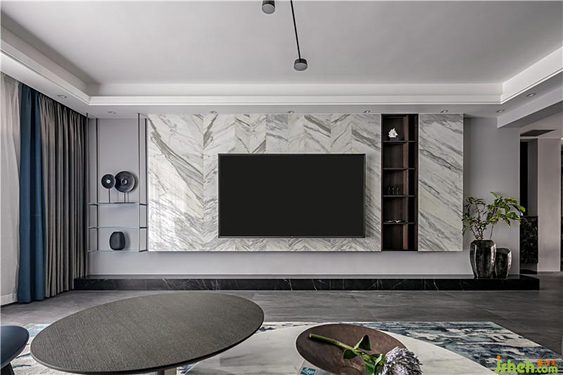 电视背景墙宽6米,层高2米7,较矮,属于偏长型空间。避免空间压抑,所以两边各留白1米。右边原生态的植物,让整个客厅充满生机勃勃的野生力量与坚韧的气度。深圳装修公司