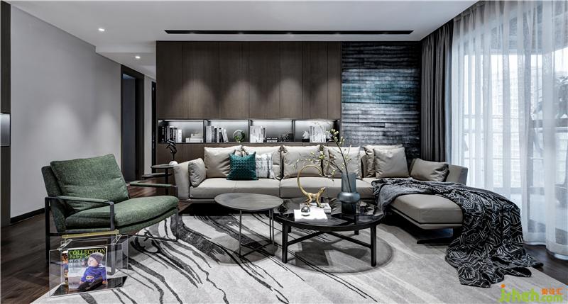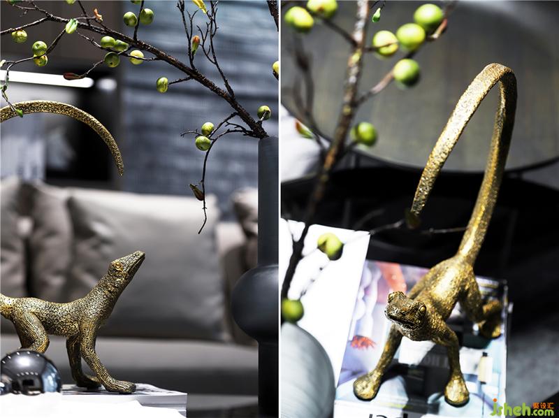 回归纯朴不只在于整体的构造,更在于细节刻画,设计中选用的家具摆饰,都各成景致,满足了多元文化并立的现代社会中,对于意识流和物质的追求不同,创造个性又建立互通点。而且动态的纹理线条、艺术摆饰也为客厅增添了许多亲和力和灵动。室内设计师