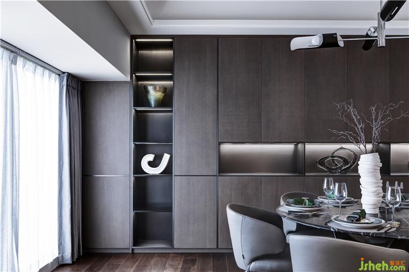 白色大理石水墨的电视墙设计,本身就具有留白的艺术感,借助灯光的晕染,点缀精致的摆件,无需过多阐述,生活的诗意会自然而然顺着木纹、盘口倾流而出,洋溢在自由、惬意的生活里。室内设计师