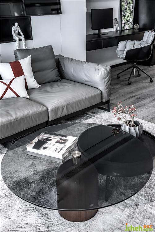 1、客厅采光不足,设计以灰白色做主调,玻璃镜面,一方面增加明亮度,一方面延伸视觉感