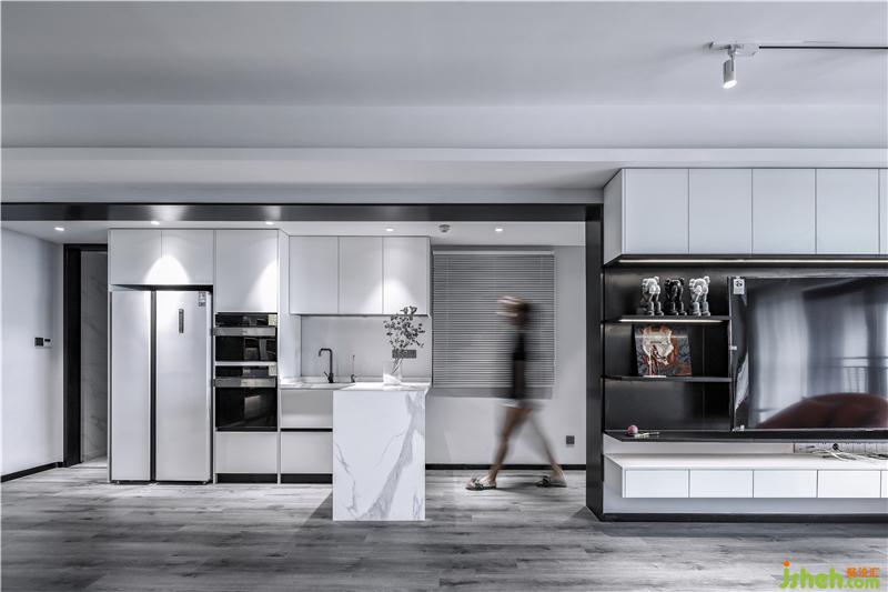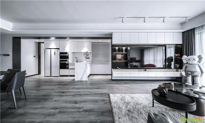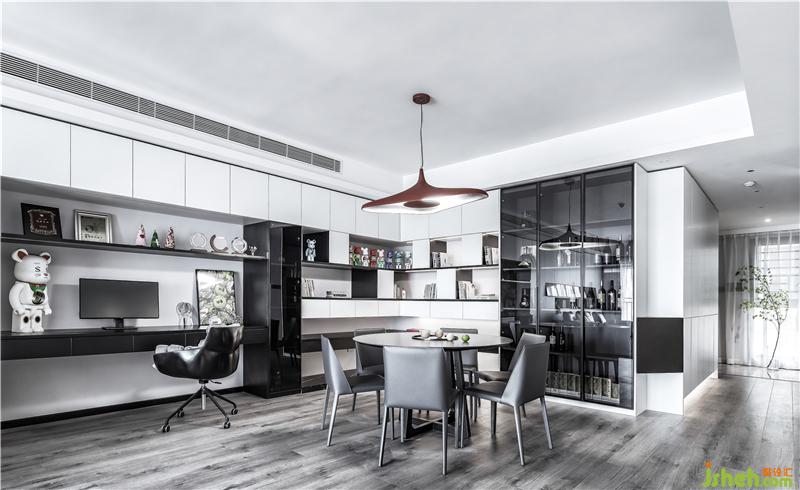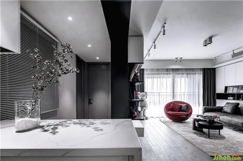 移步换景,室内设计师以黑色为视觉隔断,仿佛衍生两种出两种气质,客餐厅是简雅温馨,吧台则自带冷冽,极富理性,但正因如此,令人十分心安。