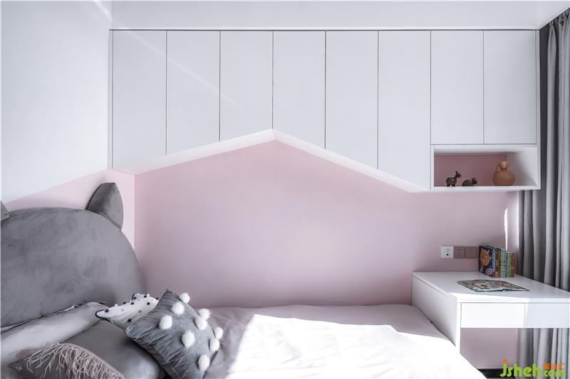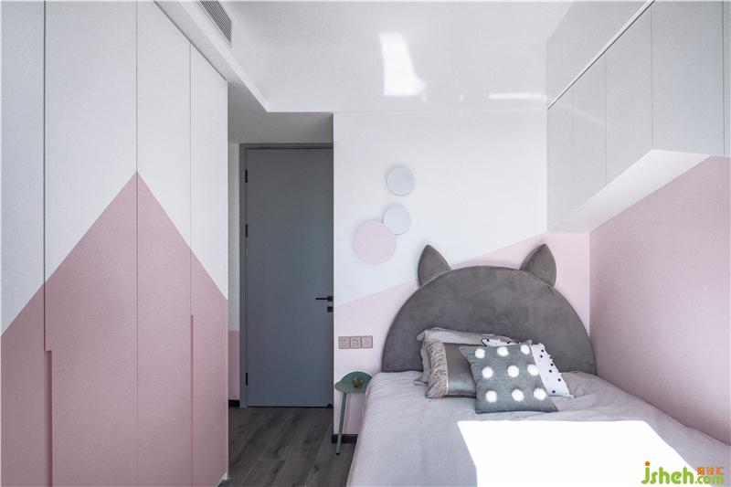 小孩房是轻快灵动的,线条纹理、定制柜体、动物元素共同组成一个梦幻的公主房,在粉色、白色的包裹下,天真烂漫,在父母应给予的呵护与宠爱下,她也能够看见窗外不断变化的世界,与之一起成长。