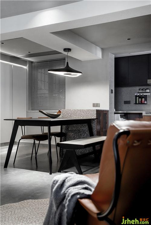 视野拉长,可见餐厅,开阔的格局,仿佛这个家大了一倍,主色彩一气呵成,统一连贯,在材质、纹理上做了区分,明确功能性。一个人也好,三五知己也好,都可以在这样的空间里,待很久很久,而不舍离去。