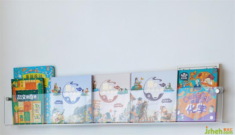 知识绽放在每个角落,在沙发里、桌子上、窗台边、黑板,还有随处可见的透明亚克力书架上,大人、孩子/ 工作、学习,她们在各自喜欢的状态里待着,又能共同感受成长和生活的美妙。