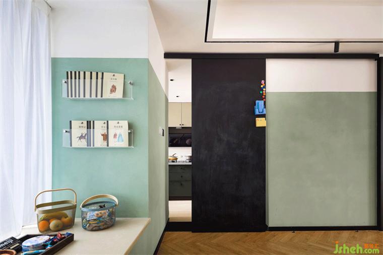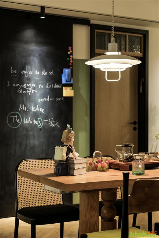 所以,连这一扇门都变的有趣起来,它既是黑板,增加学习的乐趣;又分开了厨房和餐厅,使得整个空间舒展有余。