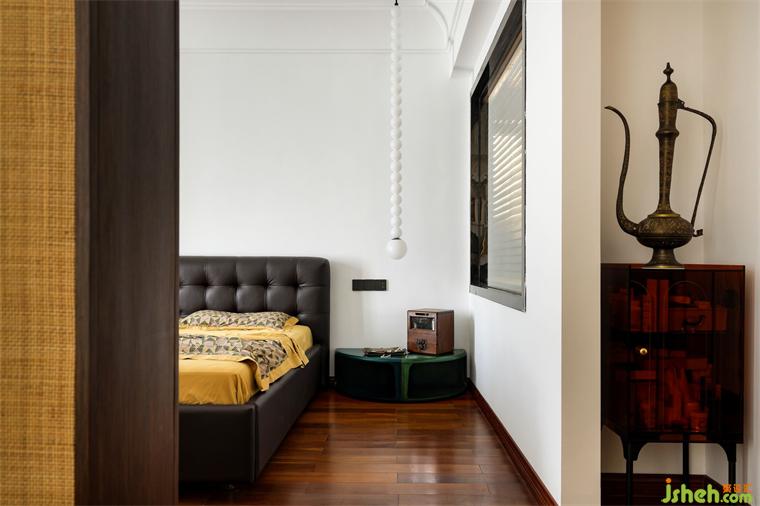 进入主卧,书柜作为隔断,旧房改造将空间划分为休闲区和休息区,独立的专注和好的睡眠同样重要。当然,熟悉的气息会让空间更有温度。