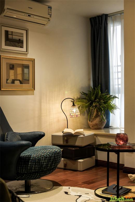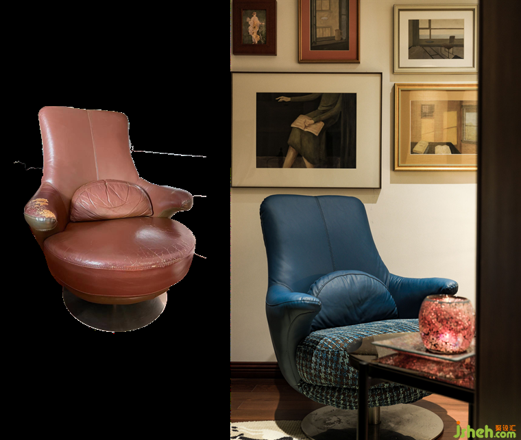 衣柜则是上了层仿原木清漆,保留了封边色;单人躺椅换掉了原来破损的皮,材质和颜色都做了翻新,这些融合进设计和空间的小巧思,旧房改造赋予了旧物新的生命,环保又持续,同时带着贴合居住者心意的方式,呈现完美。