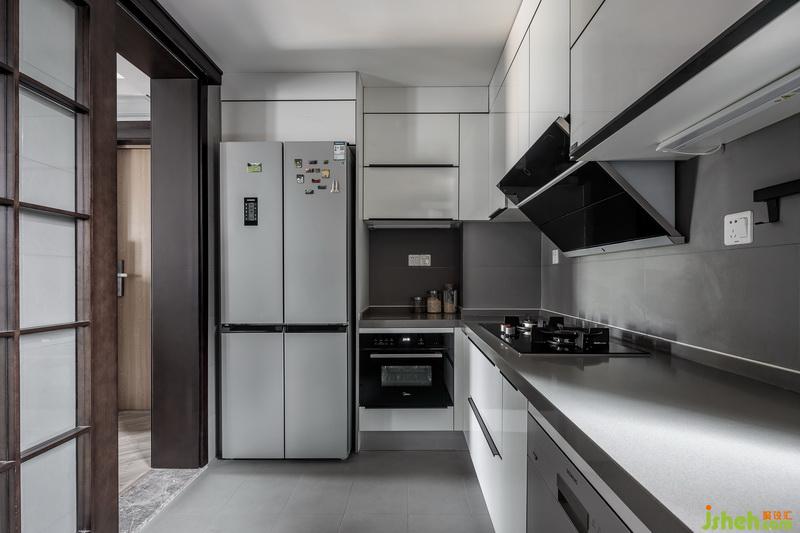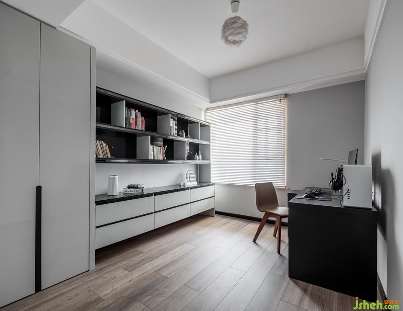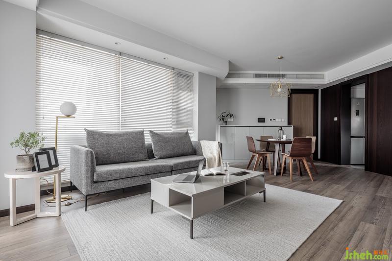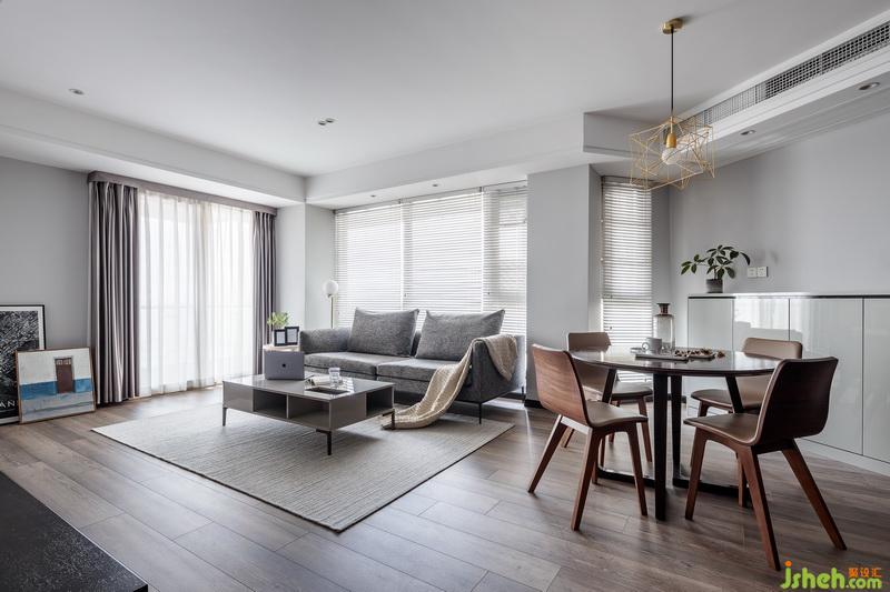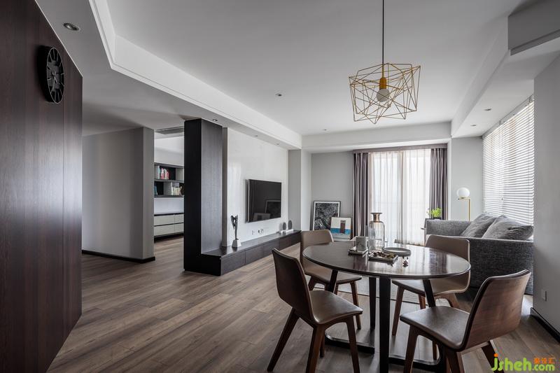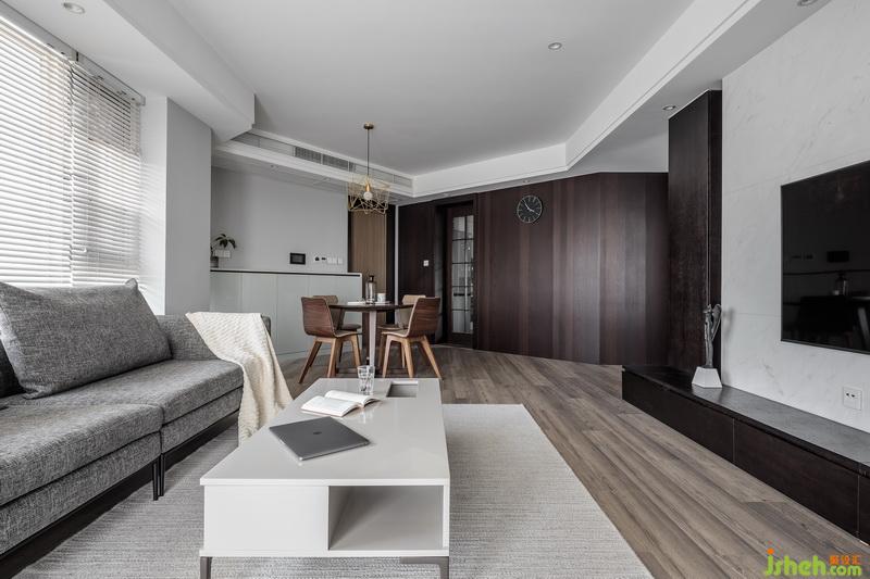 整个空间没有繁琐的设计和干扰,只有干净的线条和纯碎的颜色,在客厅布局上,巧妙的利用了电视墙体让书房的部分结合了电视墙的视觉空间,形成了一种连续延伸的轴线,也让整个空间在视觉上更宽阔,异性的空间与圆形餐桌,通过不同体块的组合,营造出开敞舒适的室内空间,以少胜多,以简胜繁,材质上采用干净的雅士白石材让空间显得有高级感,纯净的白搭配木饰面板和柜体,木材具有一种特有的温度,也调和了石材带来的冰冷,木材的温度也增强了整个家居的温暖