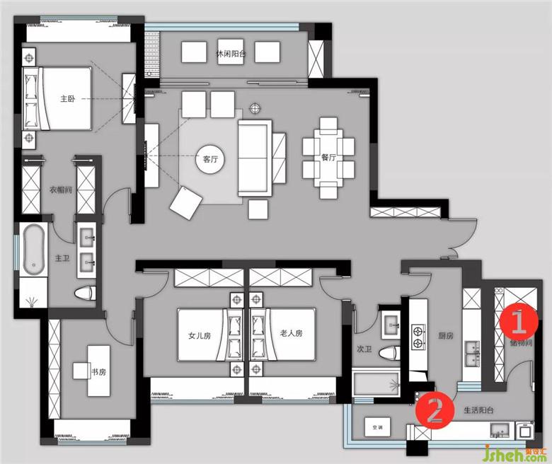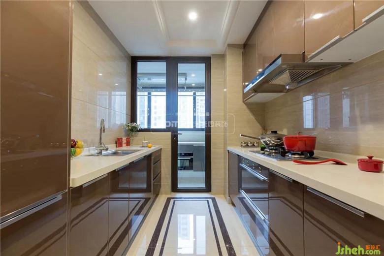 原房厨房操作空间相对其他区域小,即便大面积采光,室内光线还是暗淡,听取了设计师的建议将生活阳台封闭,增加一排橱柜;在各处小细节上也是花了一番心思,从操作台面到灯光位置分布的改善,不仅提升了空间亮度还延展了活动区域。