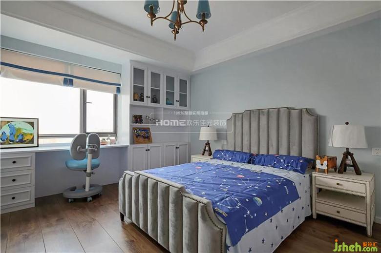 配色简明,软装舒适,让整个儿童房充满活力与温馨,在许多小细节的处理上运用大量色彩来装饰,目的是保证孩子的热情,同时也是为了给孩子一个专属的美式房间设计。