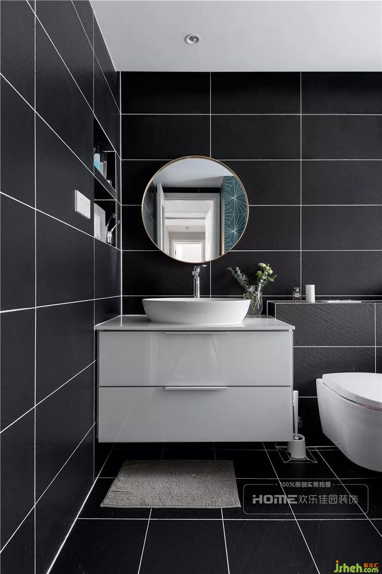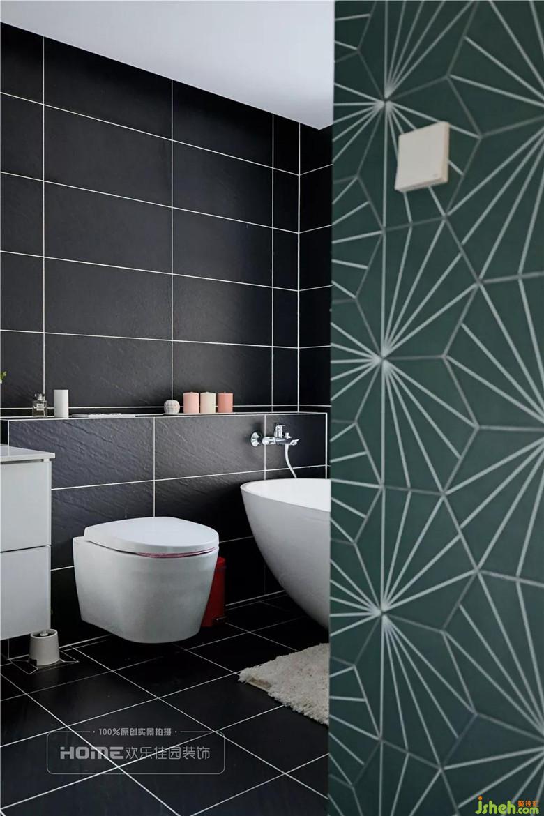 黑砖白线,简易直白的拼贴方式呈现出来的并不是单一的线条,更打造出了混搭的艺术空间,鲜明的六角绿色花砖,不仅带来了美感,还提升了生活品质。