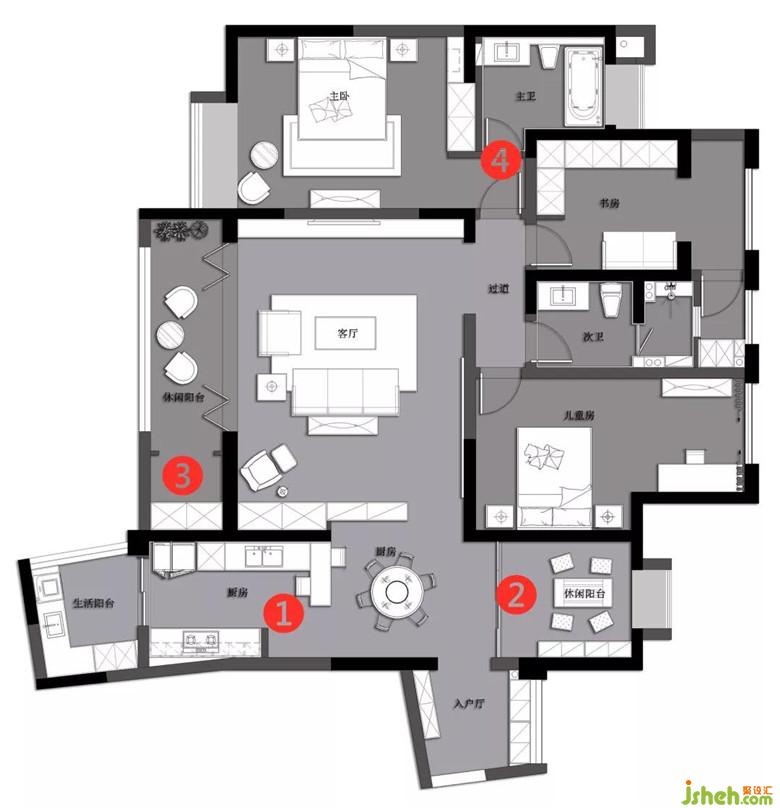 缺点:厨房,书房面积偏小,空间的比例不是太理想。