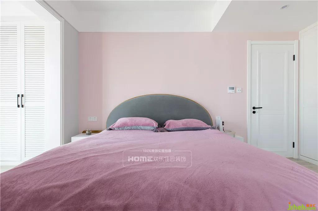毫不例外,室内设计师在主卧的色彩延续了全屋的格调,恬静柔和、温馨舒适,在一个宁静的空间里,放入一抹粉色系的浪漫,气息瞬间高涨,赋予生活更多的可能性。