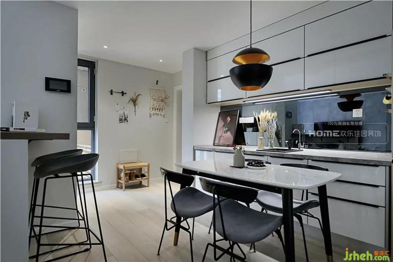 这是一套中小户型,泡泡喜欢现代偏北欧的混搭风,设计师在公共空间采用开放式格局做规划,仅以家具界定客餐厅两个不同区域,化解小坪数的局促,让视觉得以延展。