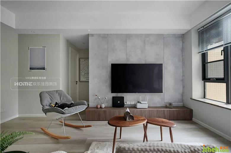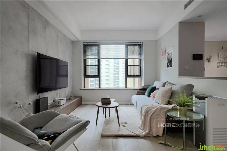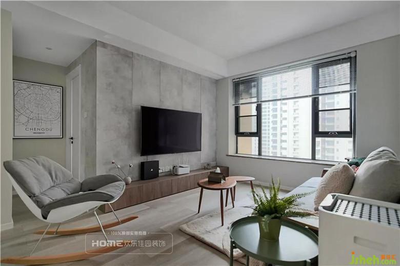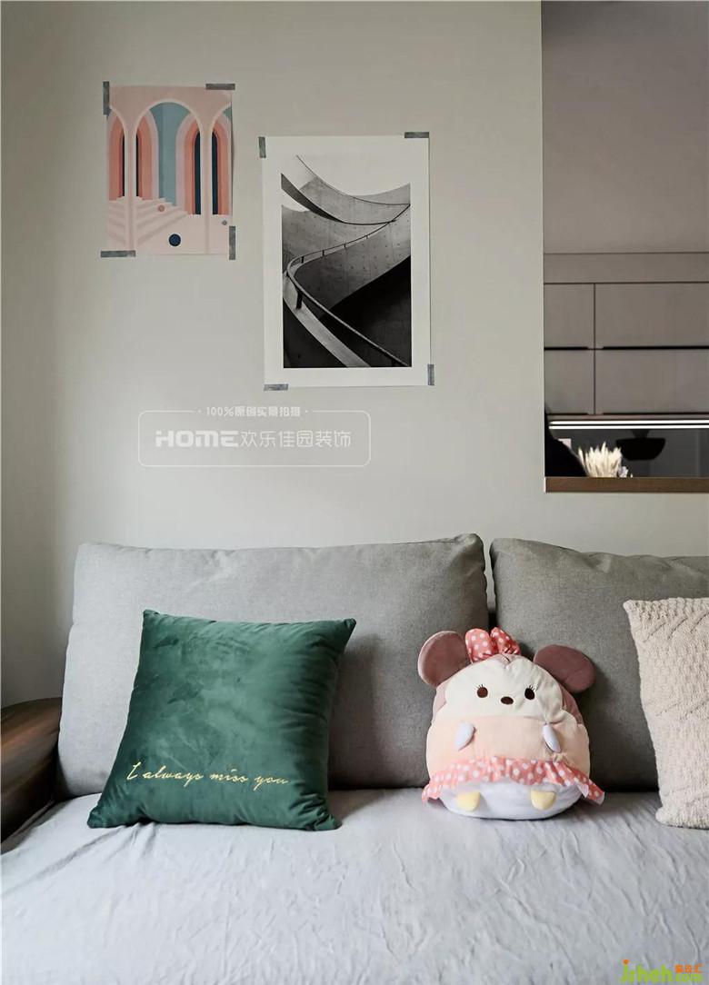 整个客厅空间以黑白灰定义现代,以原木系的家具界说北欧风,客厅电视背景墙水泥灰是泡泡的心头爱,占墙面¾的窗户,自然采光提升室内明亮感,衬得室内粉与灰,黑与白的精彩碰撞。