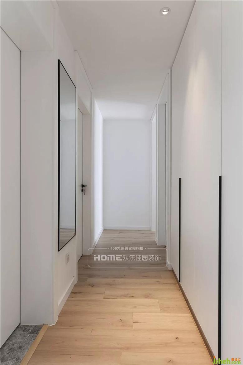 将次卧与过道墙体拆除,利用墙体厚度设计收纳柜,考虑到次卧使用率低,所以S小姐可以置放行李箱等大件物品。