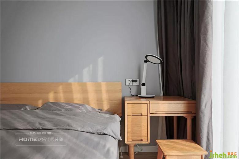 主卧注重实用性,没有过分的修饰,床头的黑色壁灯让卧室平添几分静谧感,不对称的实木床头柜和梳妆台一如既往的发挥收纳和置物功能,沉着的空间,传达出高品质的生活。