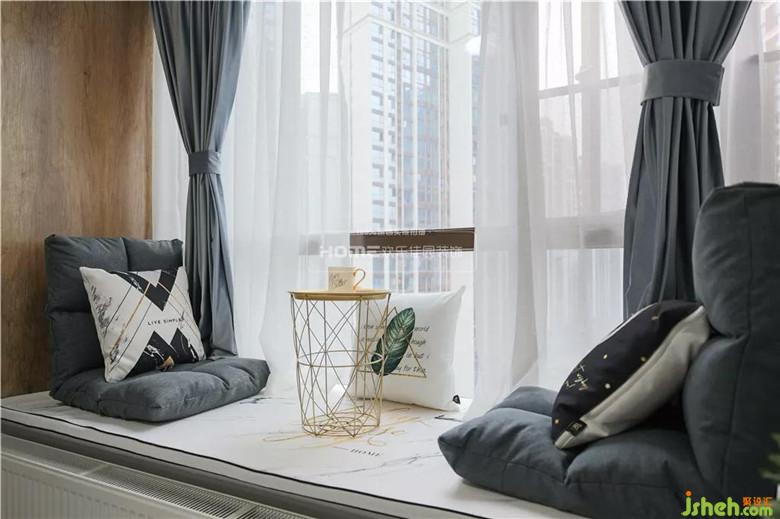 飘窗的设计颇有几分巧妙之感,抬头低眸间的水光潋滟里,却也掩盖不住几分欲说还休,有种“忙时修篱种花,闲时小酒清茶”的意境。