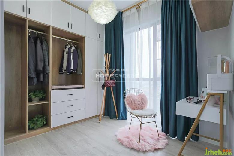 粉粉嫩嫩的理想衣帽间,合理的活动动线设计,细分出挂放区、叠放区等专用储藏空间,舒适的格局,且具有浓烈个人风格的私人空间。