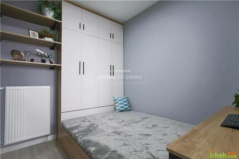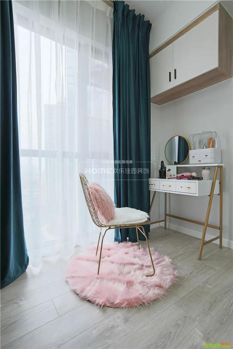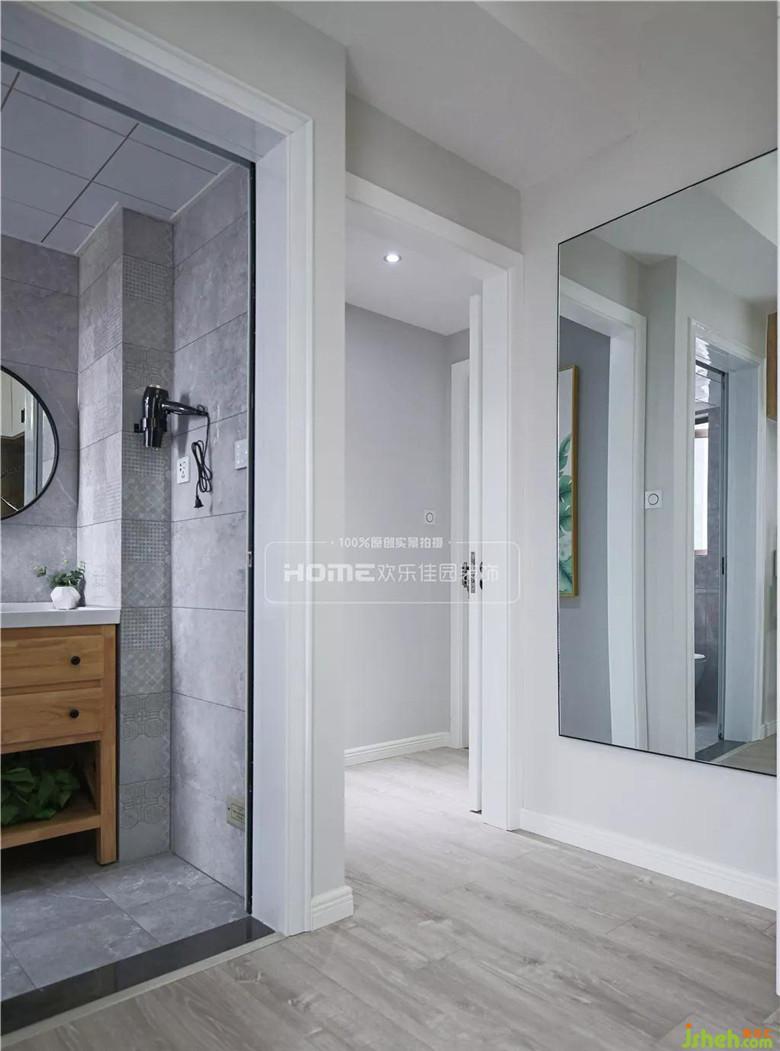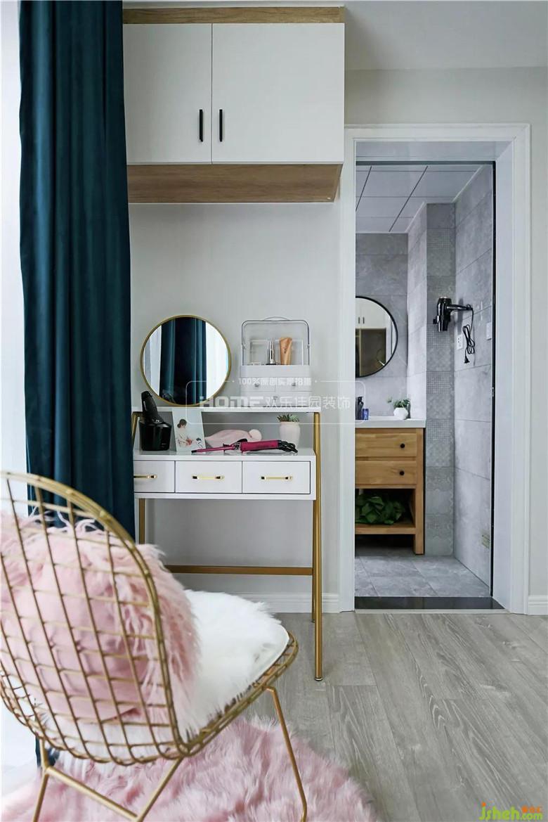 将卫生间洗漱台设计与卧室一体,增大卫生间内的舒适性,同时应琪琪的要求,在卧室设计一个独立的衣帽间,构造套间的形式。