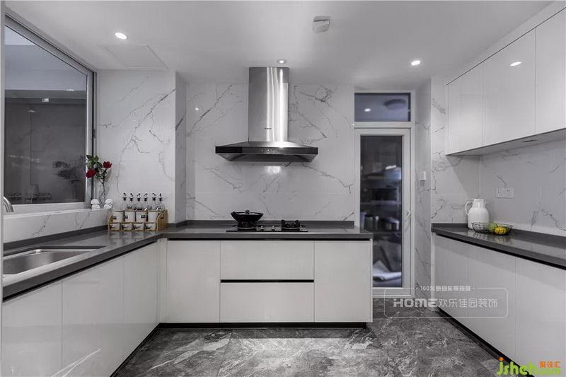 厨房的操作空间大,灶具区、洗涤区、处理区形成一个U型,保持一定的间距,可以多人操作不显拥挤,还可以容纳更多的设备。