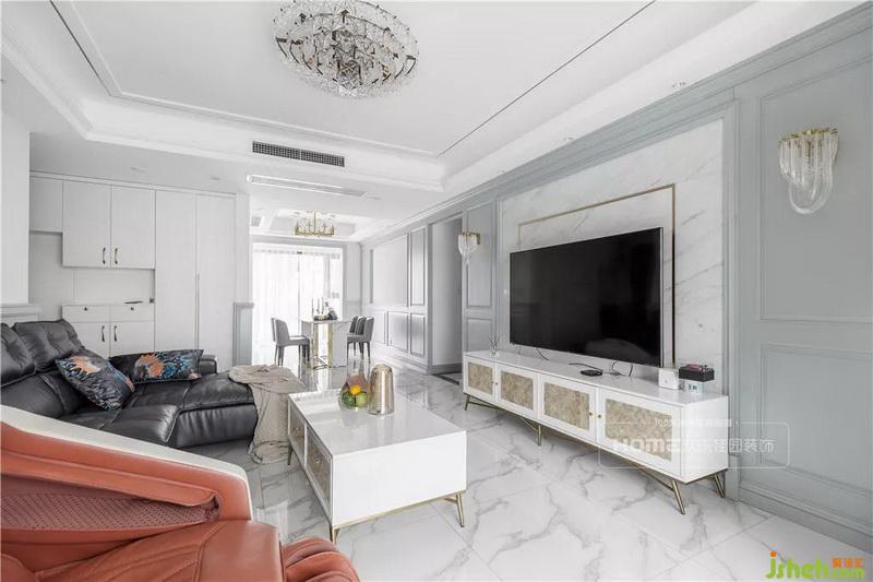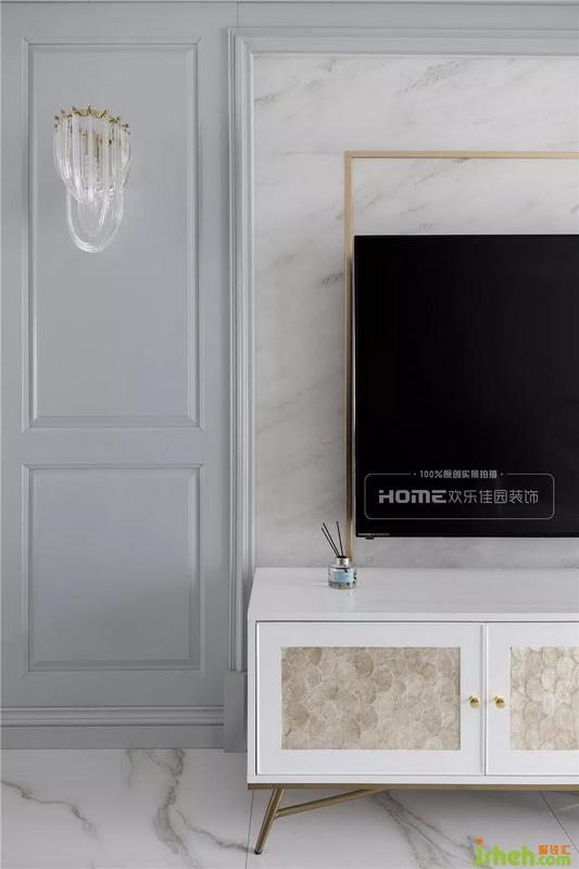一暖一热的色彩,一刚一柔的材质,相互交融,在剔透的水晶灯的映射下,绽放出华丽的乐章。金属材质的墙饰和大理石晶莹的折射力下,光和影的和谐交织,更显空间宽敞明亮。