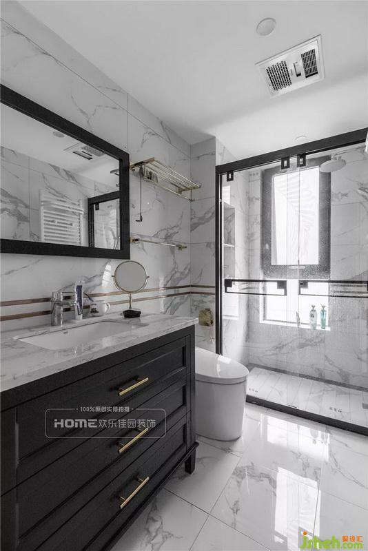 玻璃的镜面,瓷砖的纹理,金属的装饰物,拉伸空间感的同时,生活品质也得到提升,设计一扇长方形窗户,保证室内充足的光线和通透性。